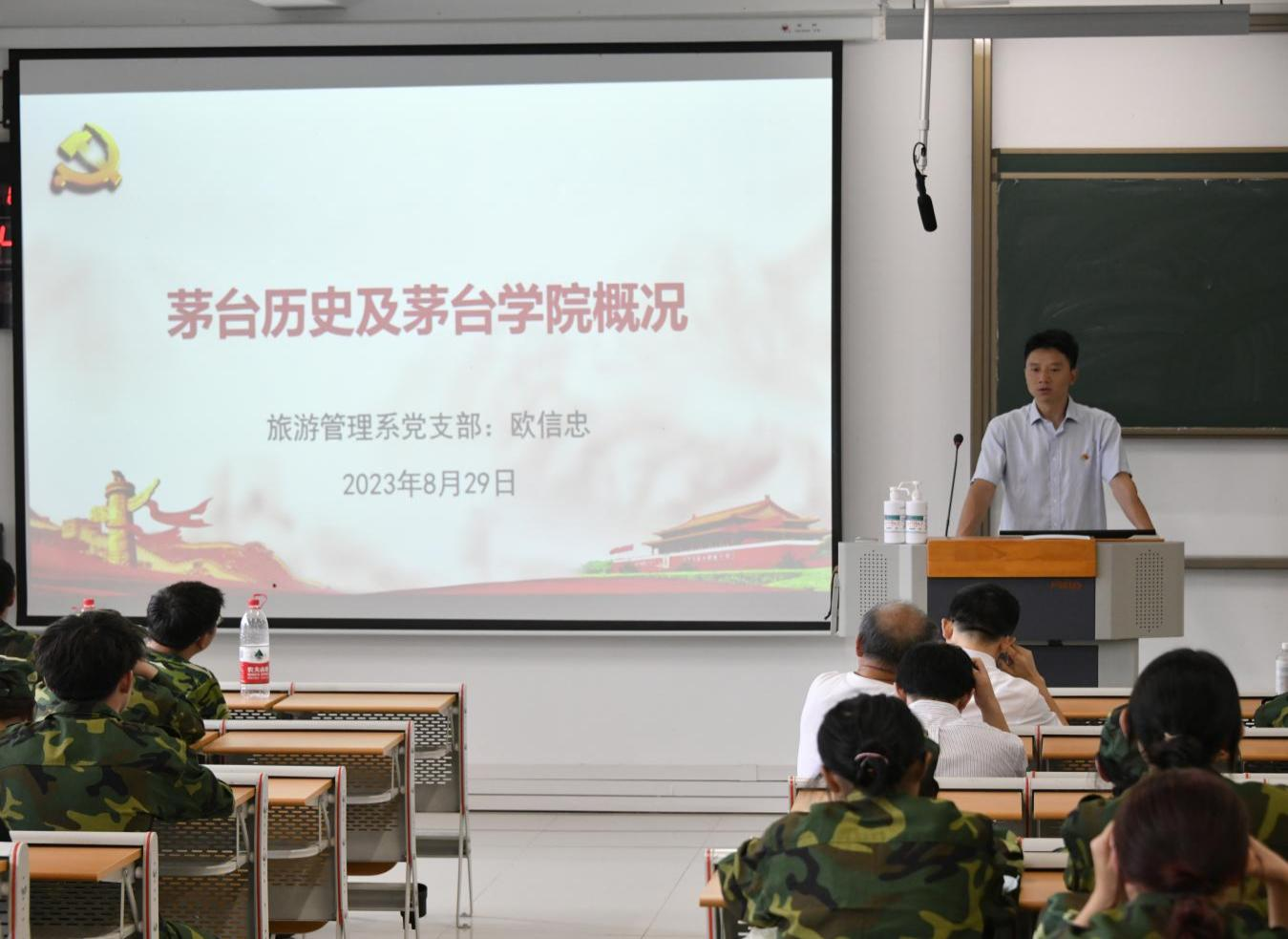 党支部书记欧信忠老师向同学们详细介绍了茅台集团、万象城娱乐awc线路的发展历程,告诫新生尽快确定学习目标,充分利用时间,稳扎稳打,不断提升、不畏艰难,在新环境中创造辉煌人生。