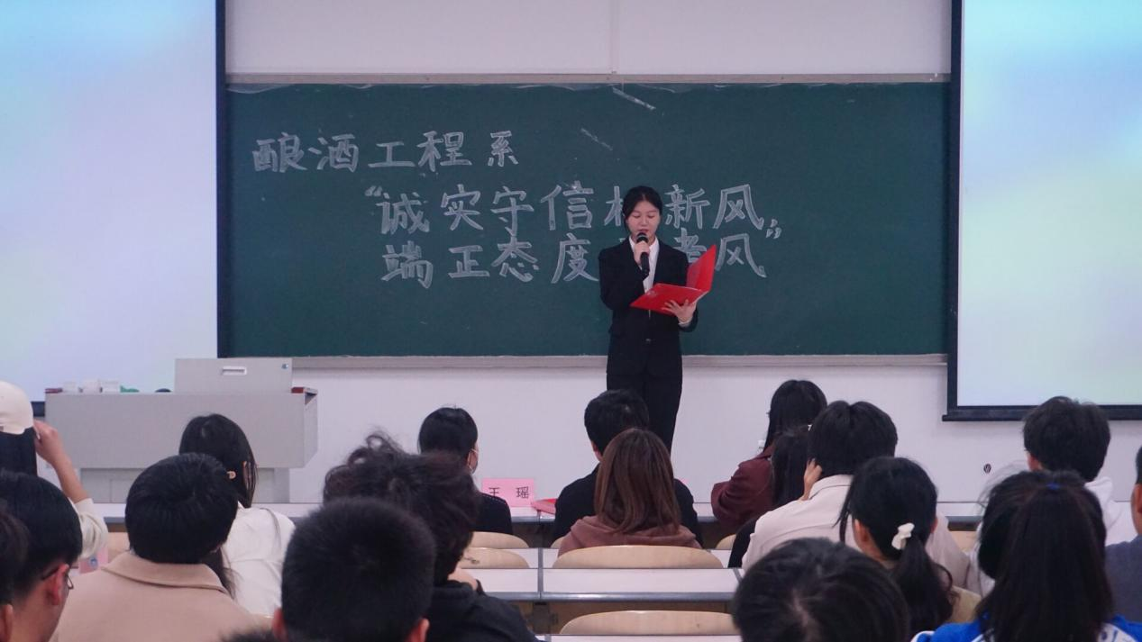 为落实诚信考试要求,推进酿酒工程系考风建设,强化学生严肃考风考纪意识,维护考试公平公正,近日,酿酒工程系开展“诚实守信树新风,端正态度立考风”主题教育活动。酿酒工程系党总支副书记刘晓晓老师,酿酒工程系辅导员郭蓉老师和王瑶老师出席本次活动。