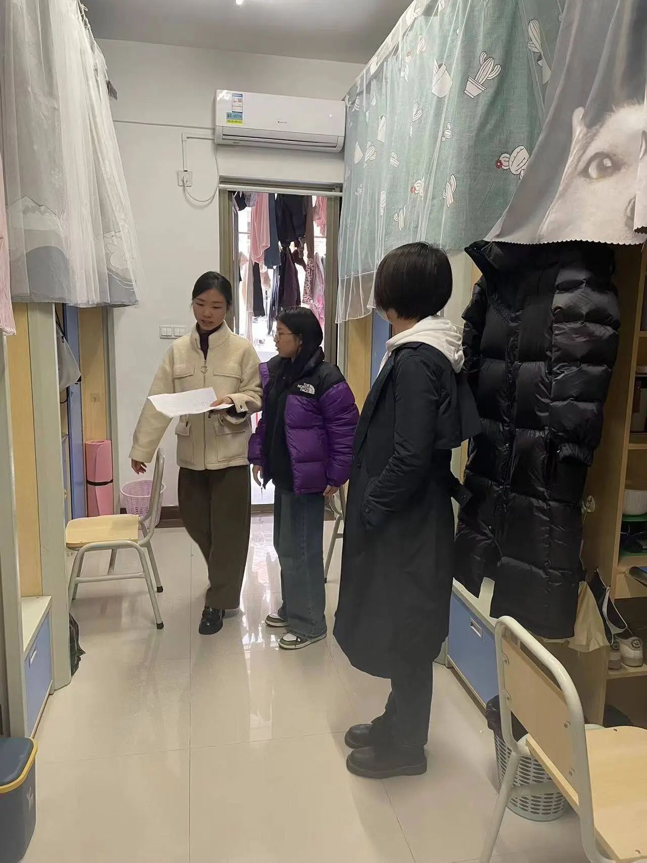 检查过程中,老师叮嘱同学们要注意宿舍用电安全,不要在宿舍内使用违规电器,不得乱接乱拉电源线,严禁将电动车电池带入宿舍充电,要定期检查日常电器和插座,发现安全隐患及时上报。希望同学们提高安全防范意识,自觉遵守宿舍管理相关规定,做到离开宿舍及时断水断电,保管好个人贵重物品,将人身安全放在第一位,共同营造安全舒适的宿舍环境。