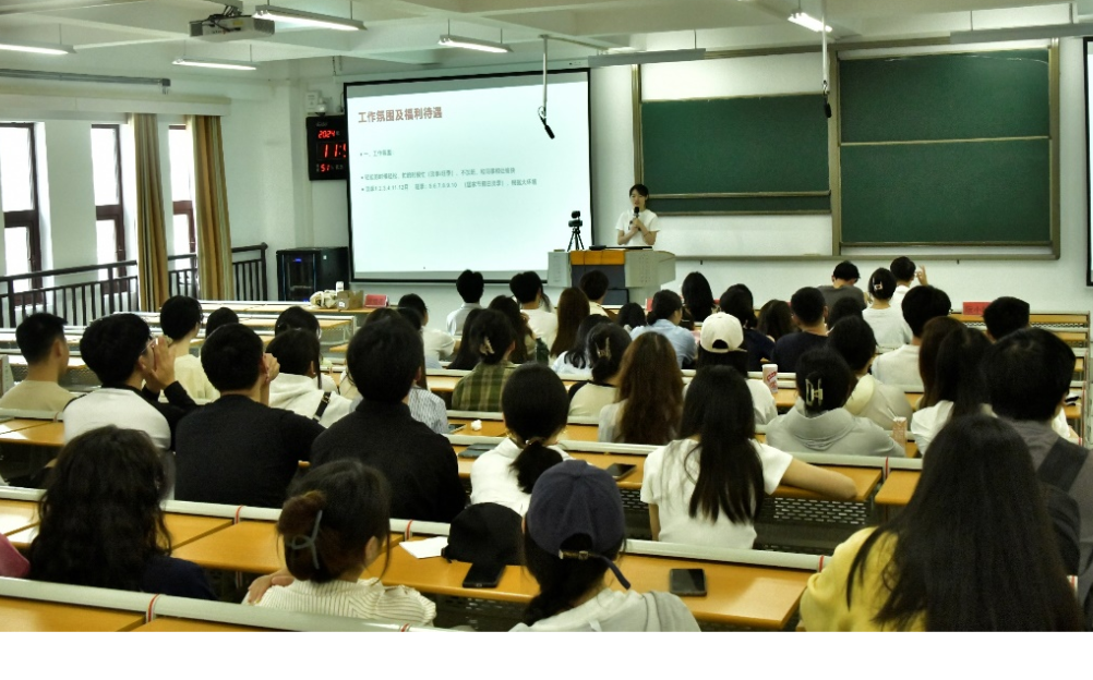 王健波同学和阮小叶同学从酒店工作优势、职业发展路径、工作氛围、工作收获等方面进行分享。王健波同学认为酒店行业是一个很有发展前景的行业,在酒店工作能够让自己学习的知识得到充分应用。阮小叶同学分享了自己在酒店从基层做到管理层的工作体会,告诉同学们扎根酒店行业也能奋斗出美好的未来。