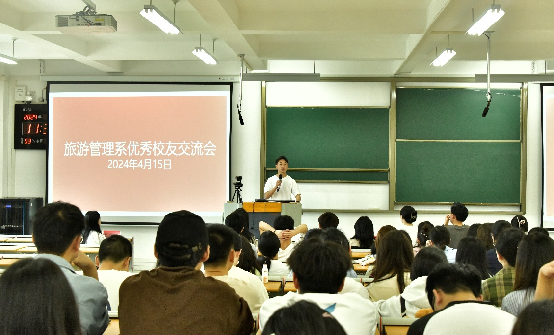 为充分发挥榜样引领作用,帮助2024届毕业生明确职业目标,有序推进就业工作。近期,旅游管理系在A1-313组织开展优秀校友交流会。会议由胡敏老师主持,旅游管理系党支部副书记吴叔娥、辅导员龚婷婷、优秀校友逯腾达、王健波、阮小叶、王绿花以及2020级全体在校生参加。