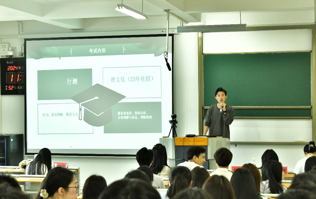 王绿花同学从为什么要选择报考大学生志愿服务西部计划,如何备考以及工作后的体会等方面进行了分享,鼓励同学们到祖国需要的地方建功立业。