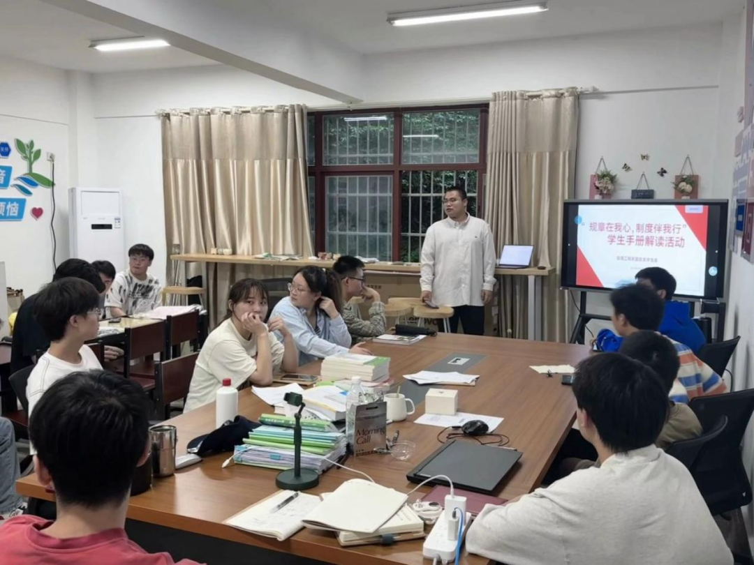 为进一步引导学生树立正确的考试观念,严肃考风考纪,加强诚信教育,明确考试管理规范,提高学生的道德素质和自律意识,培养学生诚信应考观念,引导学生严格遵循考试规章制度,树立良好的考风。近日,酿酒工程系于“一站式”学生社区开展了期末考前学生手册宣讲活动,学习部侯轩畅同学主讲,各班级学生代表参加。