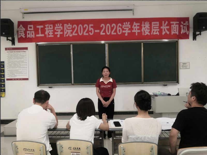 为进一步加强学生宿舍管理,营造文明有序、积极向上的寝室文化氛围,助力学院“一站式” 学生社区建设,近期,食品工程学院在报国楼顺利举办了2025-2026学年楼层长面试选拔活动,众多同学踊跃参与,展现出高度的热情与责任感。学院党总支副书记钟舒、各年级辅导员出席活动。