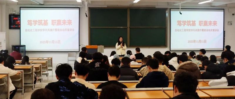 为进一步浓厚学院学习氛围,强化学生自主管理、主动学习意识,帮助2026届毕业生精准把握就业脉搏,助力高质量就业。2025年11月11日下午,自动化工程学院“笃学筑基、职赢未来”学风再提升暨就业动员会在A1-512教室顺利举办。活动邀请到学校党委学生工作部(招生就业部)副部长刘秋、主办李华出席,学院院长周克、党总支副书记肖启霞,2026届全体毕业生及大二、大三部分班干代表参加,会议由学院党总支书记欧信忠主持。