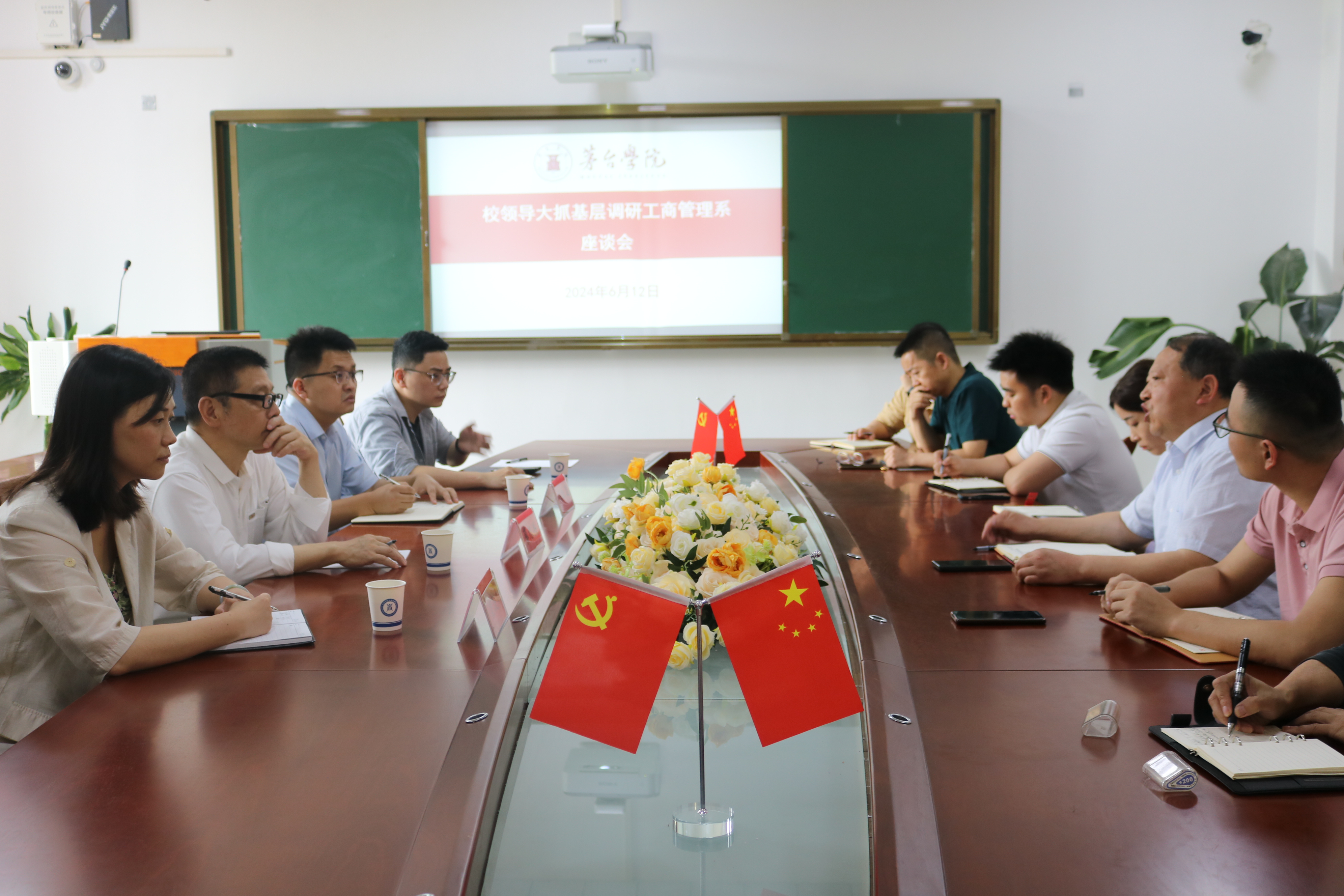 为深入了解基层单位工作开展情况,听取基层意见建议,推动“大抓基层”各项工作落地落实,6月12日,校长蔡绍洪带队到工商管理系调研并指导工作开展,座谈会在工商管理系会议室召开。副校长闫松显陪同调研。