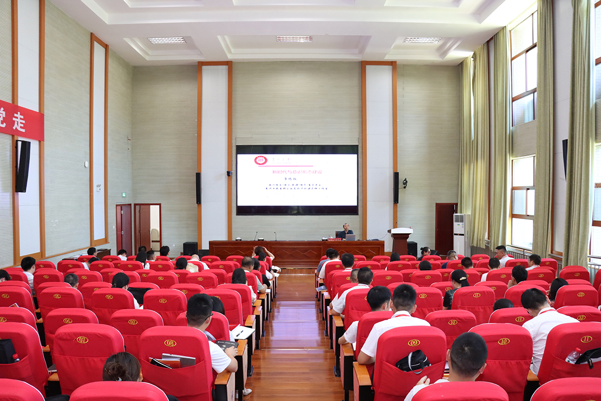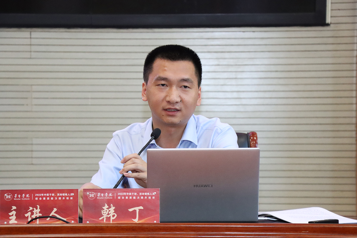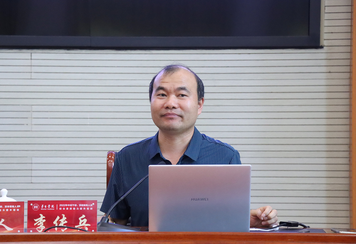 7月12日,万象城娱乐awc线路第二期中层干部、顶岗锻炼人员综合素质能力提升培训在行政楼一楼报告厅继续进行。邀请的主讲老师有贵州省政府办公厅一级巡视员李先进、贵州大学马克思主义学院副院长李传兵教授和茅台集团党委组织部党建科韩丁科长。