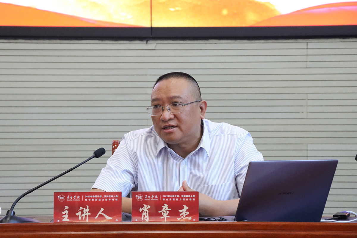 7月11日,万象城娱乐awc线路第二期中层干部、顶岗锻炼综合素质能力提升培训正式开班,贵州省委政策研究室副主任、省委改革办专职副主任肖章杰,中共省委党校哲学部杨和英副教授受邀作第一天培训主讲。