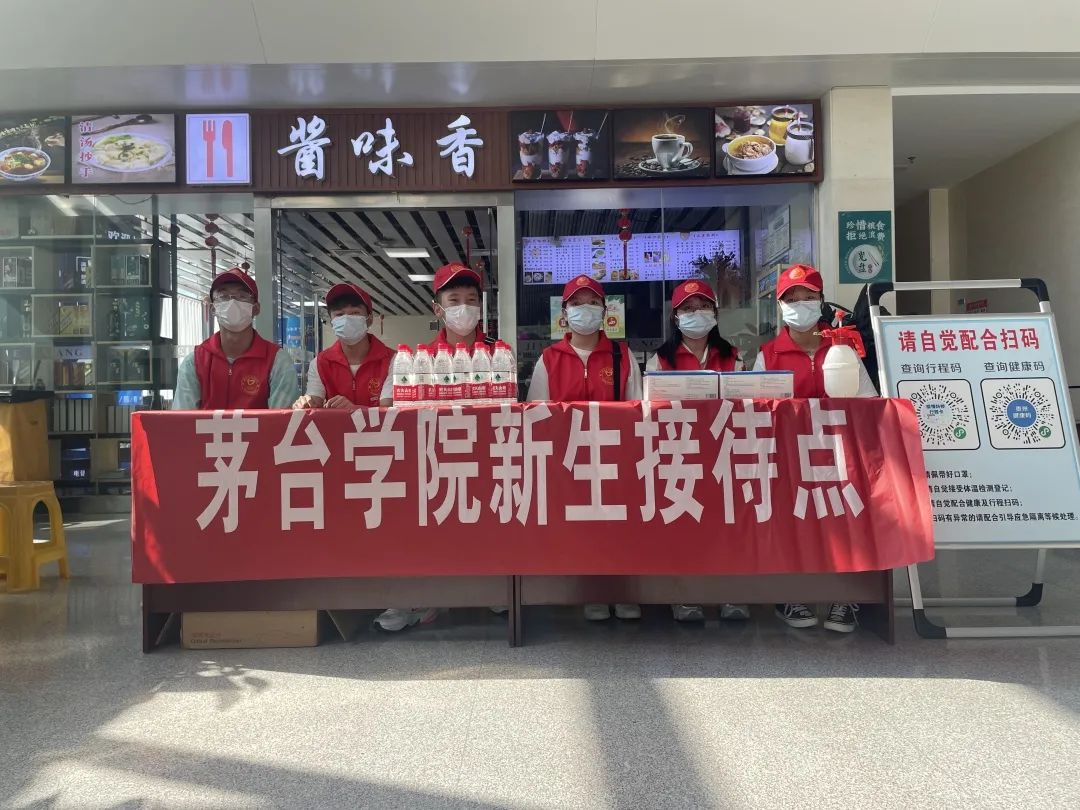 为使同学们能够更方便快捷地进校办理入学手续,万象城娱乐awc线路青年志愿者协会分别在仁怀市汽车站(水口)及茅台机场设置了新生接待点,为新生测温、行李消毒,帮助同学搬运行李,陪同新同学入校报到。身穿红色马甲的志愿者们在校门口顶着炎炎烈日护送同学们到各系迎新点报道,筑起茅院一道亮丽而又独特的风景线。