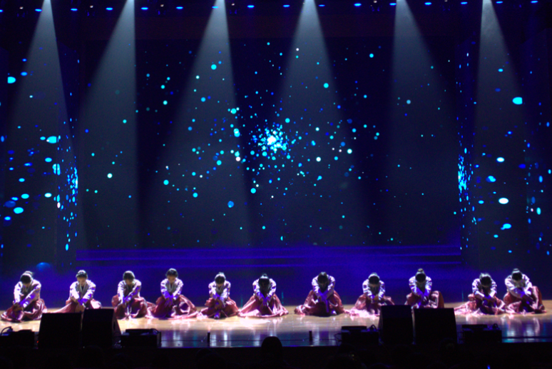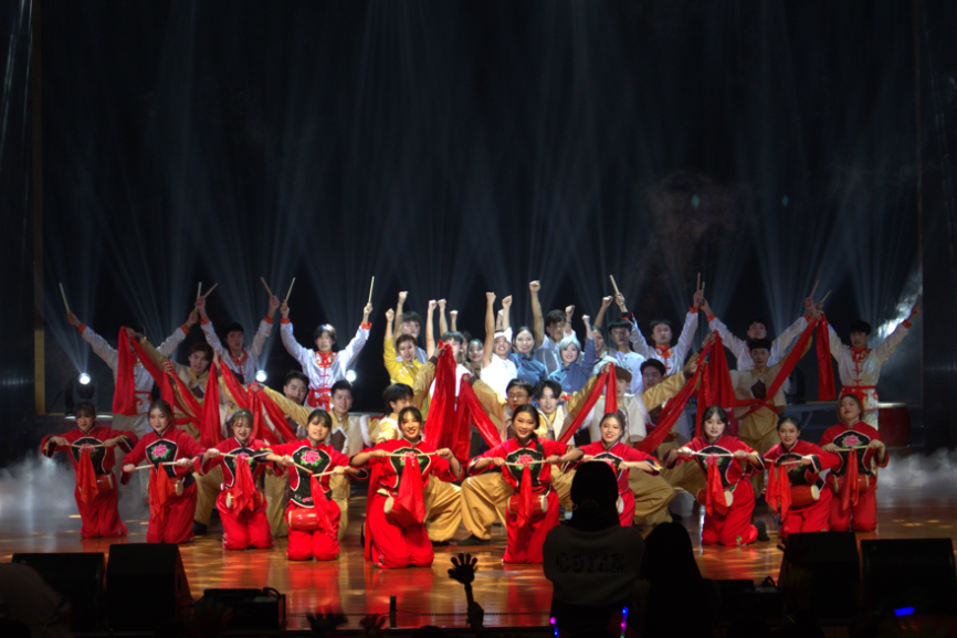 一轮红日从东方升起,新的希望照耀大地。鲜红的彩旗,澎湃的鼓声,翩翩的舞姿,坐席满满,彩灯把氛围拉到天边。