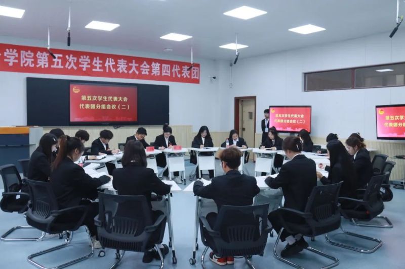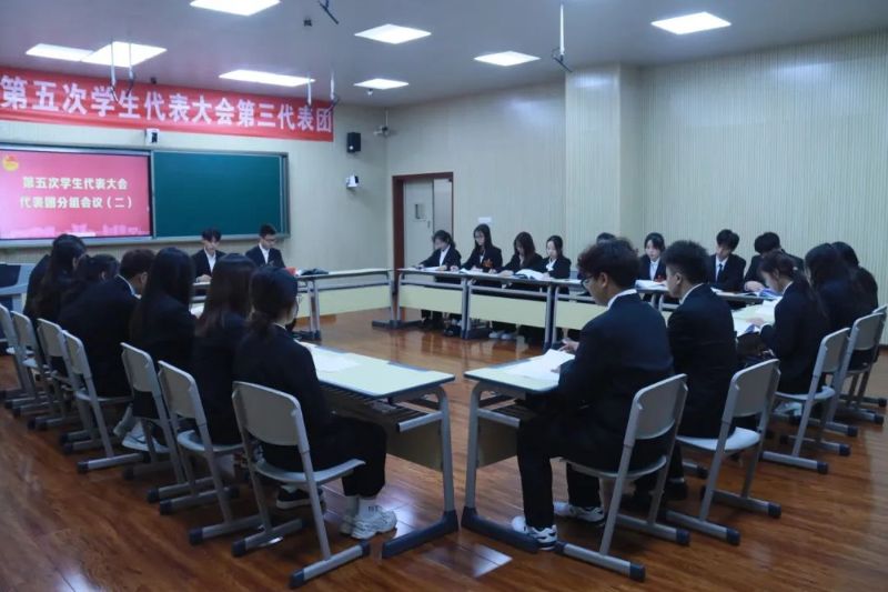 与会代表分五个代表团召开分团会议,讨论了第四届学生会工作报告。