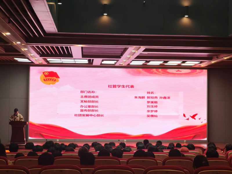 朱思洁老师宣读社团管理部第六届主席团成员、干部以及各学生社团新一任负责人任职名单。这不仅是对他们辛勤付出的肯定,更是对新一届学生干部的激励和鞭策。