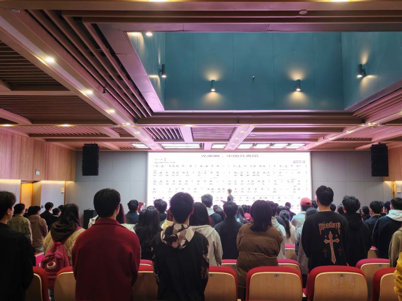 大会进行第一项,全体人员合唱《光荣啊,中国共青团》。