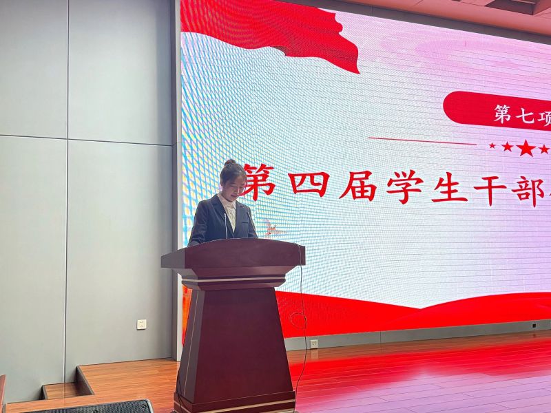 校团委朱思洁老师为第三届学生干部颁发聘书。