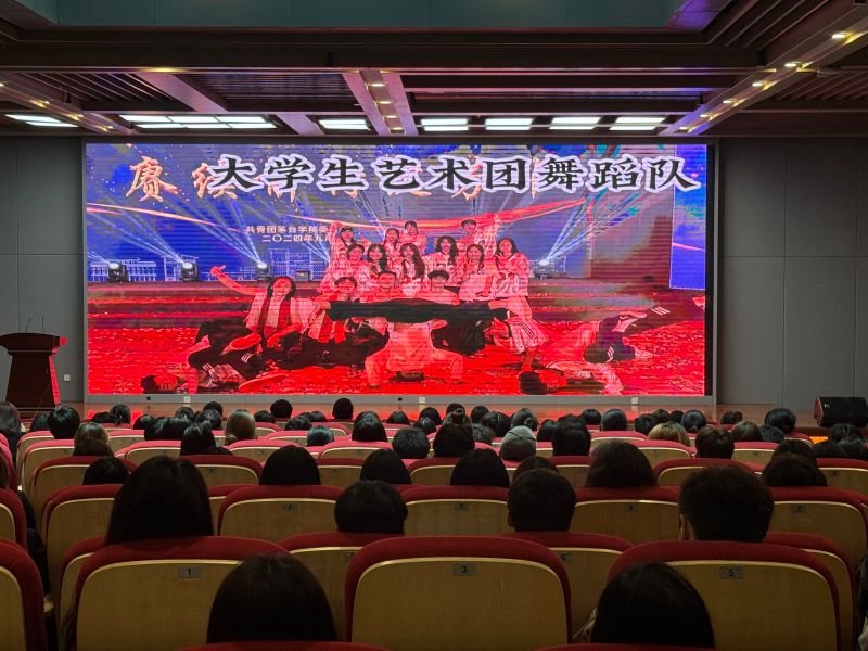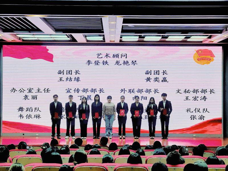 校团委梁宇老师上台作总结发言,分别从回顾过往、感恩付出和展望未来三个部分全面总结大学生艺术团过去一年的工作和所取得的成绩。向新一届大学生艺术团全体成员提出坚守初心热爱、勇于传承创新和加强团队协作的期望。号召全体大学生艺术团成员共同努力,为同学们带来更多精品表演,为校园文化注入更多的艺术活力,让艺术之花在美丽校园中绽放得更加绚烂。