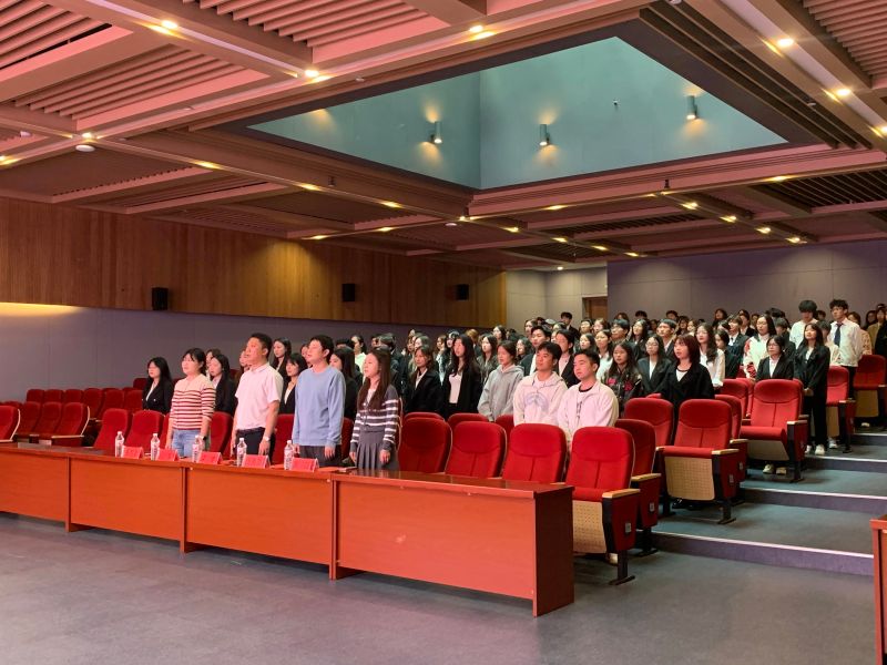 大会在庄严肃穆的气氛中拉开帷幕,全体参会人员起立,奏唱团歌,嘹亮的歌声在会场回响,展现了青年学子的精神风貌。