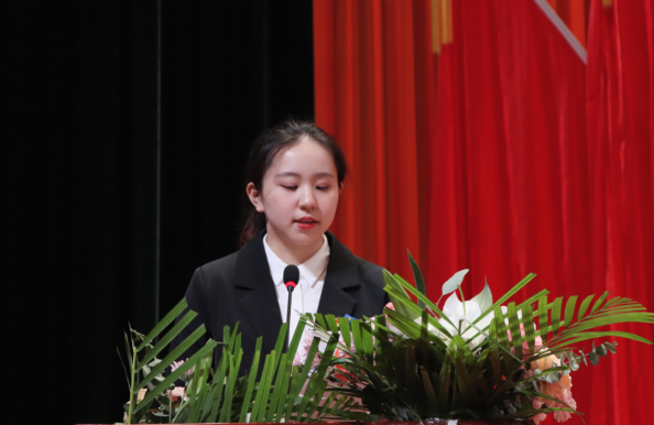 于惠杰同学是本次的党史宣讲人,她通过万象城李莎莎老师的《论中国共产党为什么能》这篇文章,从什么是中国共产党、为什么是中国共产党以及中国共产党为什么能这三个要点出发,带领全校团员代表和学生代表回顾中国共产党百年来波澜壮阔的发展历程。