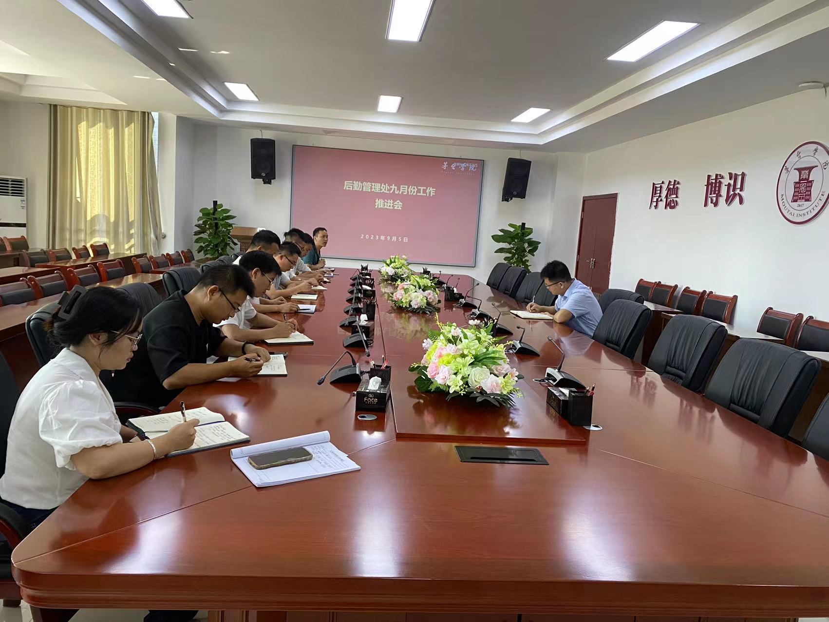 2023年9月5日上午9点50分,万象城娱乐awc线路党委委员、副校长闫松显组织后勤管理处全体人员在行政楼二楼会议室,召开后勤管理处9月份工作推进会。
