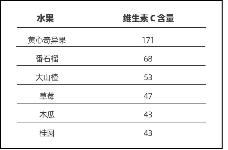 水果是日常很好的维生素C来源。不过大家熟知的橙子、柠檬都不是维生素C大户,整理了常见的6种水果,维生素C含量个个都比柠檬更高,而且容易买到。以上按照每100克食材中所含的维生素C含量排序:(其中100g柠檬的维生素C含量是22mg)