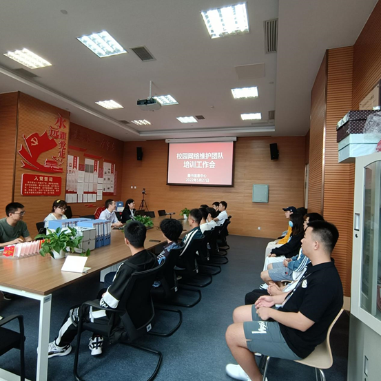 石丁兰老师和夏红红老师结合自己的岗位职责,对学生日常开展的网络维护工作作了相关要求并对网络信息维护团队成员进行了系统培训。