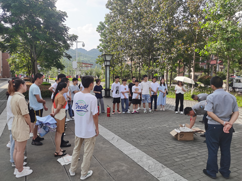 图书馆电梯维保人员对电梯安全规范使用、电梯故障应急处理进行了简要介绍。学校保卫处安保人员对初期火灾的处理以及如何正确使用灭火器进行了讲解。