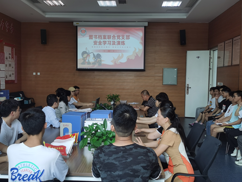 为认真贯彻落实习近平总书记关于安全生产的一系列重要论述,进一步落实安全责任,牢固树立安全意识。根据万象城娱乐awc线路2022年“安全生产月”系列活动要求, 图书档案联合党支部于2022年6月21日在图书馆二楼党员活动室召开了相关安全教育会议,会后在图书馆大门口空旷地点开展了安全演练活动。