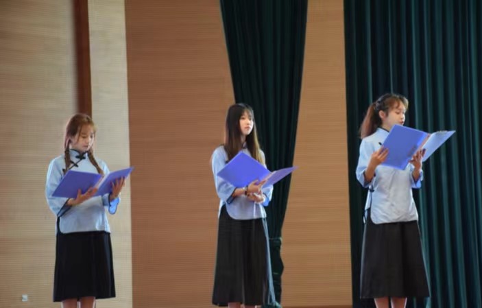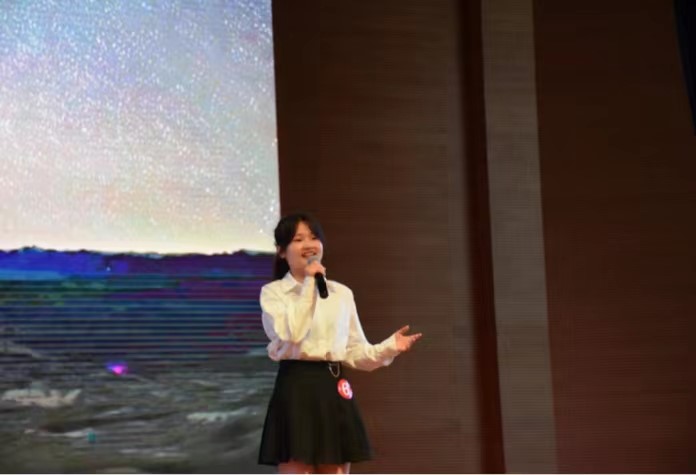 赛场上,选手们以饱满的激情、激昂的语言、大方得体的举止来展现自己的实力,把自己对作品的理解勇敢的表达出来,将自己对祖国的感情表达的淋漓尽致。选手们或朗读千古传颂的名篇,让我们在精简的语言当中去感受历史,去领略古典诗词的魅力——《长恨歌》;或诵读现代诗篇,让我们在轻悠的配乐中,吟诵者带领着我们走进诗人的心田,去领悟诗人心中的感情——《我喜欢出发》;或表达爱国情怀,吟诵者带领我们去感受作者、作品的爱国情操,极大地激发了师生的爱国热情——《祖国啊,我亲爱的祖国》......