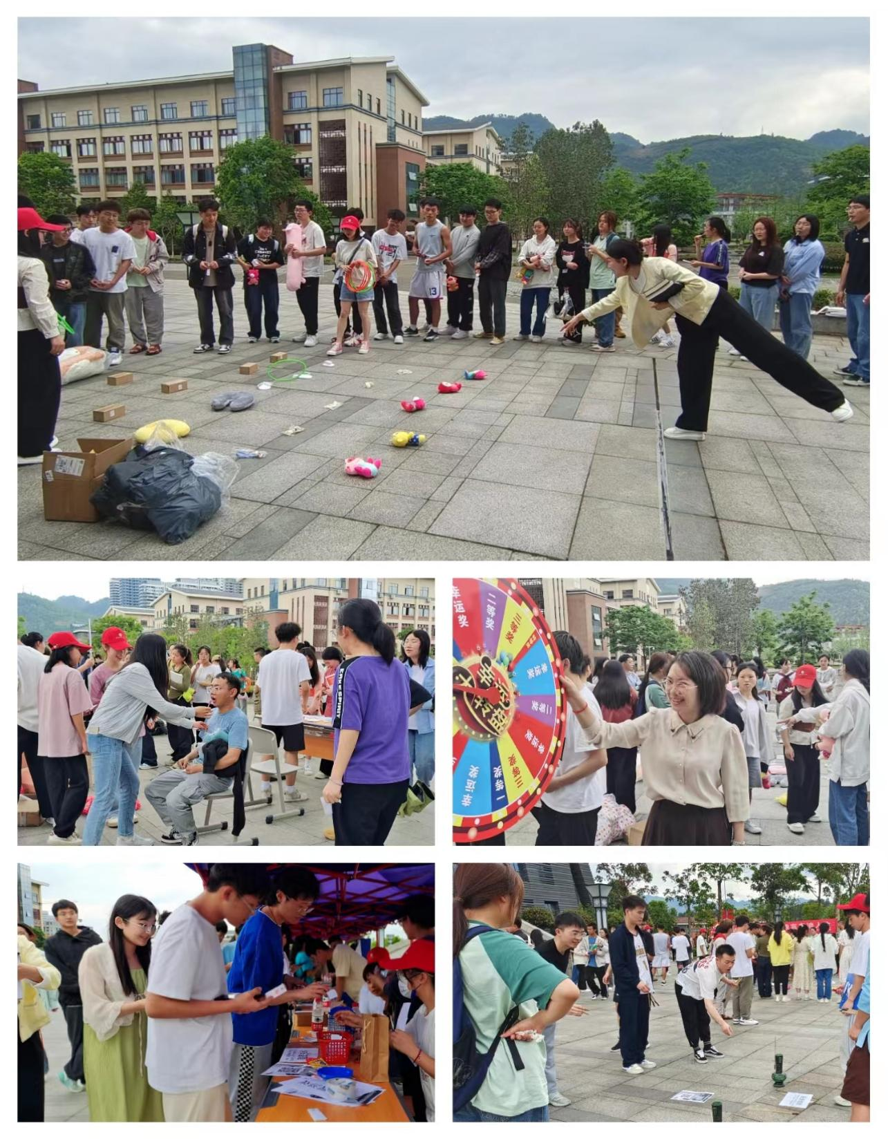 此次设有“图书纸质资源,数字资源的介绍及使用、现场答疑解惑、读者问卷调研及新书推荐活动。并设置了趣味套圈、传统游戏、联想游戏以及蒙眼吃糖等相关的游戏活动。活动中,同学们跃跃欲试、积极主动地参加了各项活动,掀起了读书活动的热潮。最后,整个活动在校领导的带领下、在图信中心老师们的精心组织筹备下和在同学们的热情参与下圆满结束。