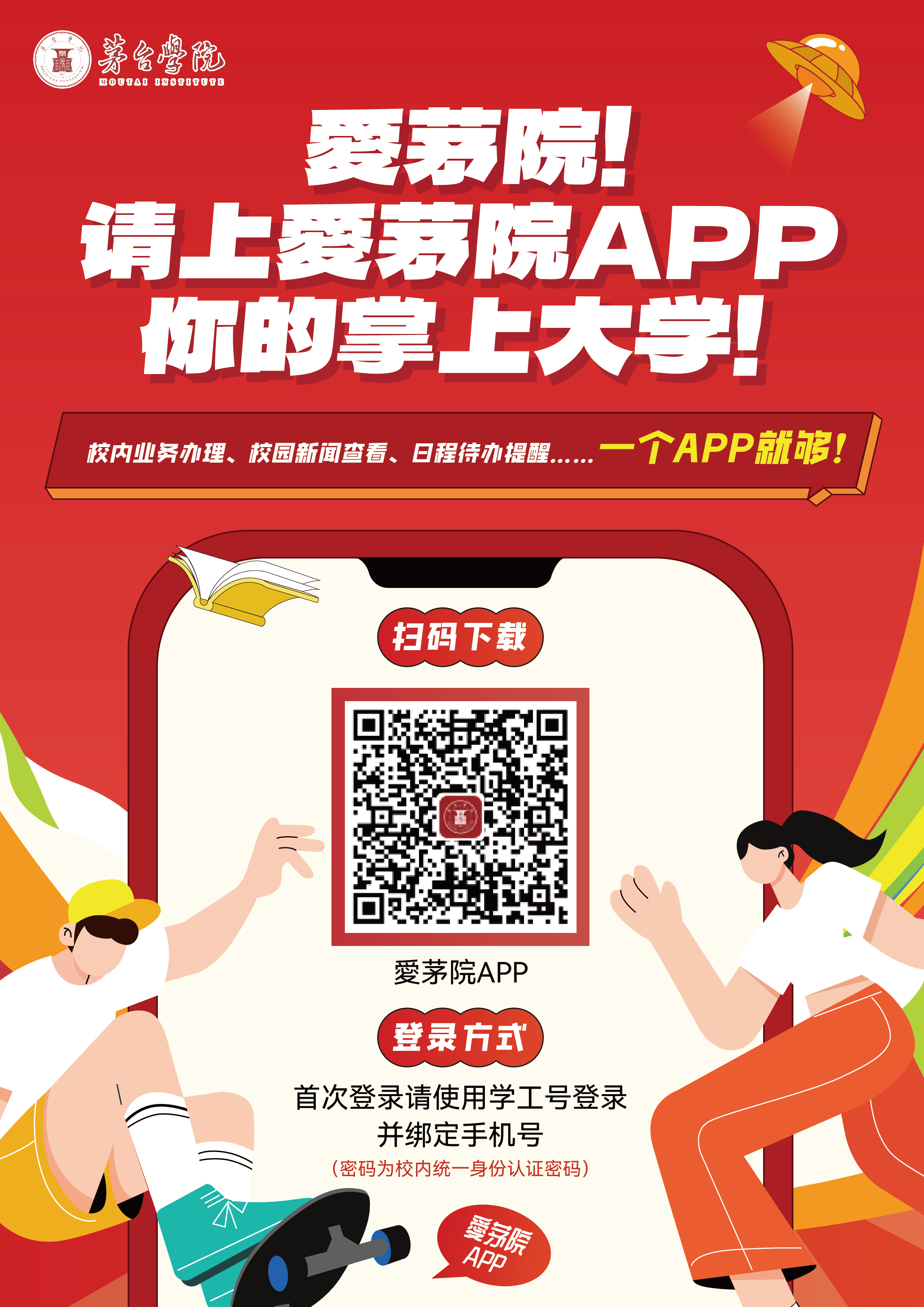为更进一步方便师生网上办事,提升信息化服务质量,提高用户满意度,按照学校2023年度信息化建设的工作部署,经全校各部门共同努力,学校“愛茅院”APP拟于2023年09月26日上线。具体通知如下: