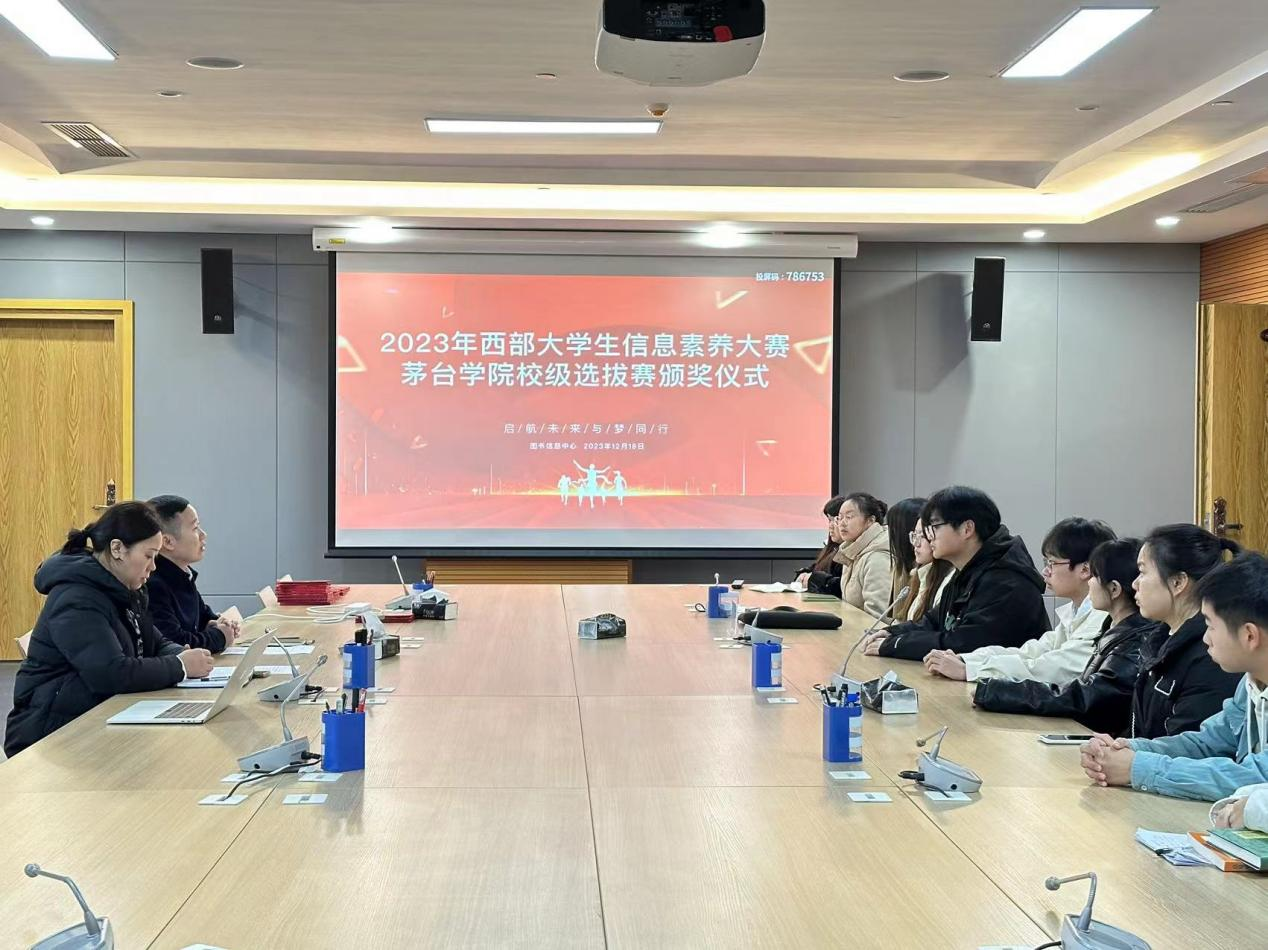 为鼓励同学加强信息素养学习,培养信息素养意识。2023年12月18日上午,2023年西部大学生信息素养大赛万象城娱乐awc线路校级选拔赛颁奖仪式在图书信息中心会议室举行,图书信息中心主任李萍出席仪式,由图书信息中心副主任王能利主持。