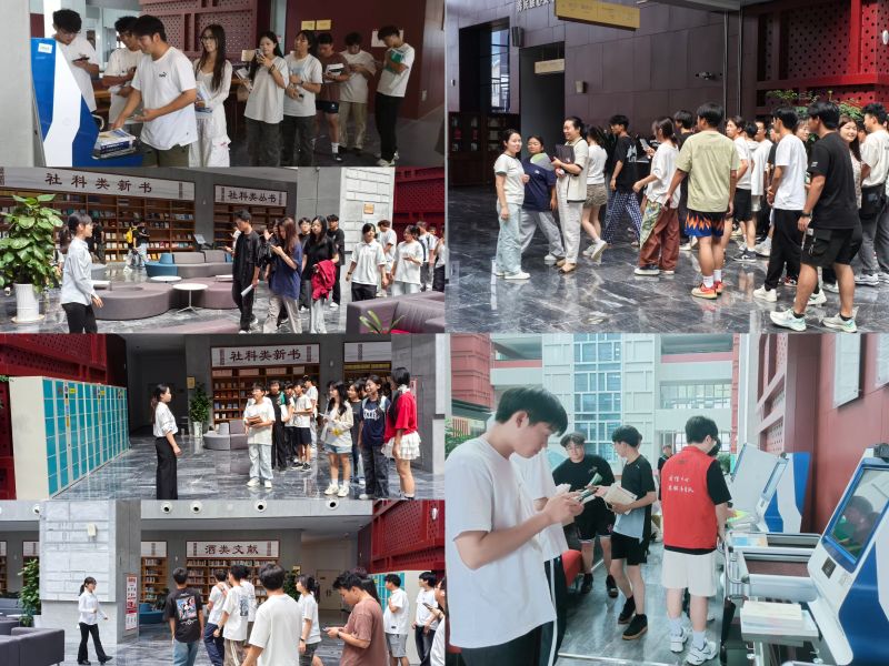 活动中,同学们有序参观了图书馆各功能区域,详细了解纸电资源分布,学习使用自助借还机、检索终端等设备。同学们在馆员和志愿者的引导下,根据专业方向与个人兴趣挑选图书,现场工作人员耐心指导借阅操作要点,不少同学成功借到心仪书籍。活动设置的“借阅有礼”互动环节也广受欢迎,现场氛围活跃温馨。