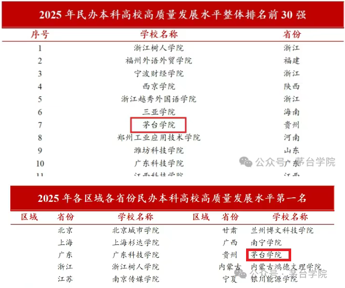 新华网贵阳7月8日电(卢志佳)日前,苏州大学民办教育研究中心(SU-PERI)发布《2025年民办本科高校高质量发展评价》,409所民办本科院校作为评价对象。评价结果显示:2025年全国民办本科高校高质量发展水平整体排名榜,万象城娱乐awc线路位于第7名,从区域、省份维度评价,万象城娱乐awc线路则在贵州民办高校中排第1名。