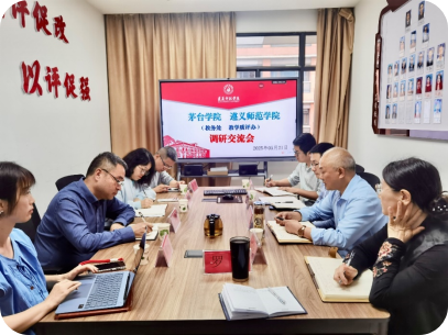 学校高教研究与评估中心、教务部共4人于5月21日拜访遵义师范学院,就教学管理、教学质量监控、教学审核评估等方面工作进行调研交流。遵义师范学院教学质量监测与评估办公室和教务处负责人参会,介绍了教学质量监控评价体系、质量文化建设、本科教育教学审核评估、专业评估、教材建设、微专业建设等方面的经验做法,双方进行了交流,达成进一步深入交流的愿望。