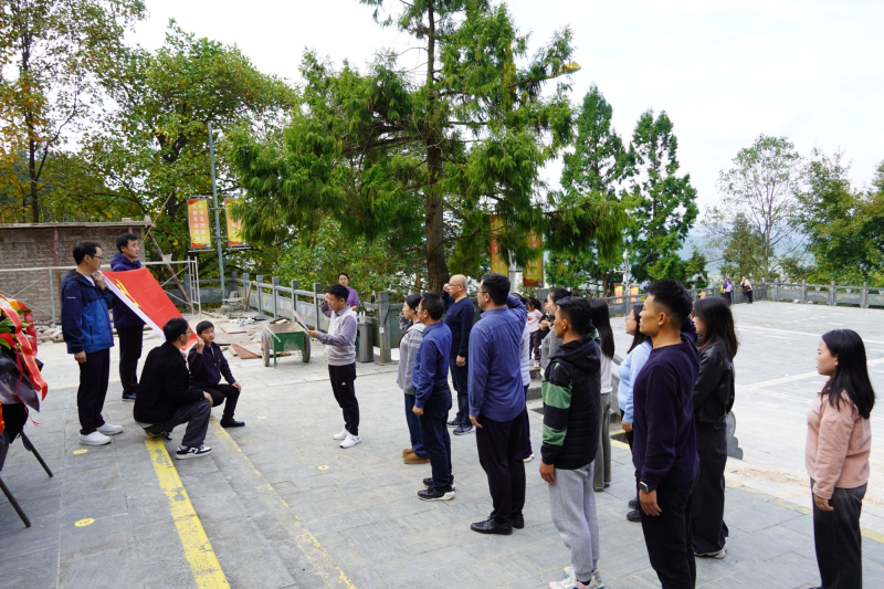 随后,全体人员到黎平会议旧址及陈列馆参观学习。黎平会议旧址完整保留了 1935 年中央红军长征途经此地时召开政治局会议的历史场景。参观结束后,全体人员前往南泉山烈士陵园开展缅怀革命先烈活动,向革命先辈敬献花篮,肃立默哀,深切缅怀红军长征时期的峥嵘岁月与牺牲精神。在党支部书记喻仕瑞的带领下,全体党员面向鲜红的党旗庄严举起右拳,重温了入党誓词,铮铮誓言铿锵有力,进一步坚定了“为党育人、为国育才”的初心使命。