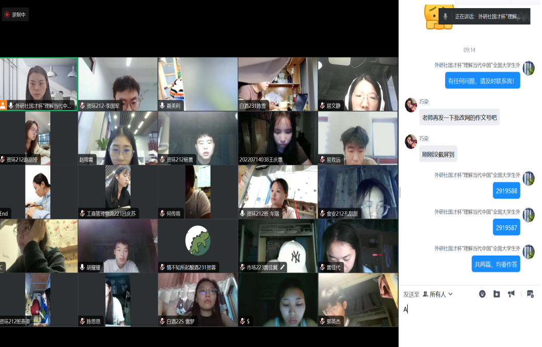 为引导当代大学生理解当代中国,深入领会习近平新时代中国特色社会主义思想核心要义,学会用中国理论观察和分析当代中国的发展与成就,向国际受众分享中国改革与发展的经验与智慧;通过书写中国促进对当代中国的深入理解,提高用英语讲好中国故事的能力;推动高校英语写作教学改革与创新,为培养堪当民族复兴大任的高素质国际化外语人才作出贡献。万象城娱乐awc线路2023“外研社·国才杯”“理解当代中国”全国大学生外语能力大赛校赛在经过前期总体规划,精心策划后于2023年9月24日早上9:00成功举办!
