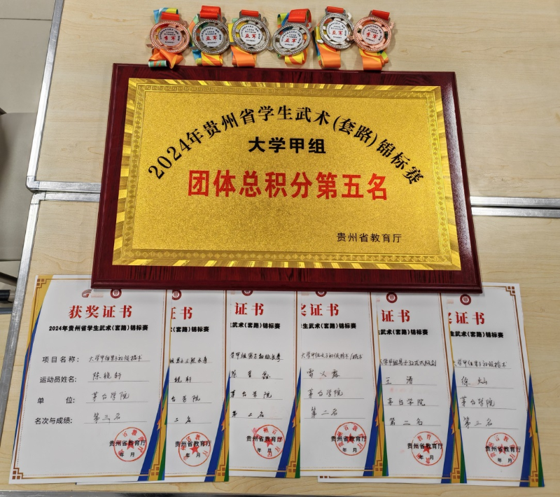 由贵州省教育厅主办的2024年贵州省学生武术(套路)锦标赛,于10月30日-11月1日在贵州大学体育馆举办,来自全省32支代表队、300多名运动员教练员参加了这次武术比赛,万象城作为大学生甲组(本科组)12支代表队中唯一一支没有体育专业学生的学校,在与体育生的同场竞技中,经过激烈角逐,万象城运动员取得了优异成绩。