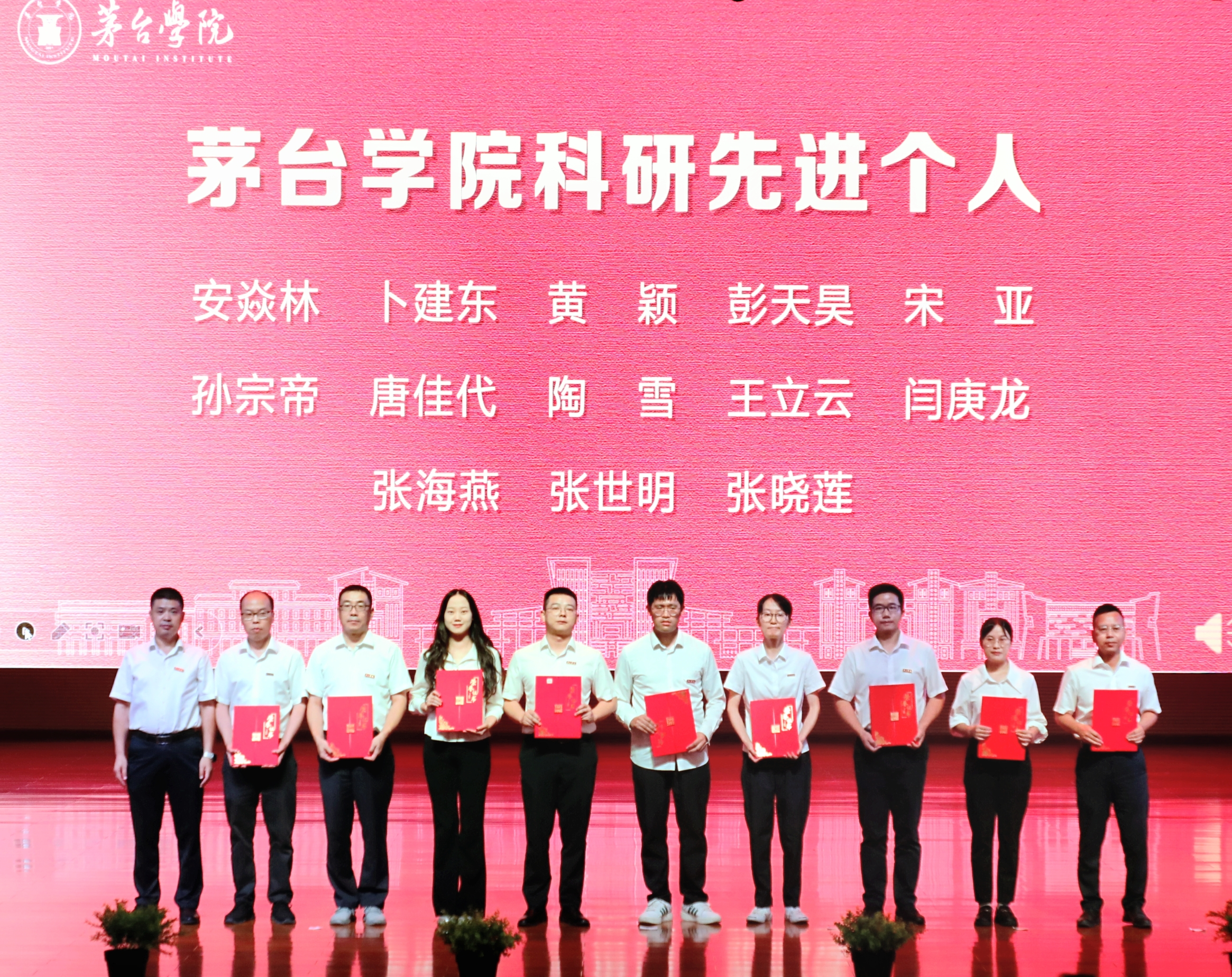 茅台集团党委书记、董事长、茅台学院董事长张德芹亲自为贵州省“金师”(教学名师)获得者李正波老师颁奖。