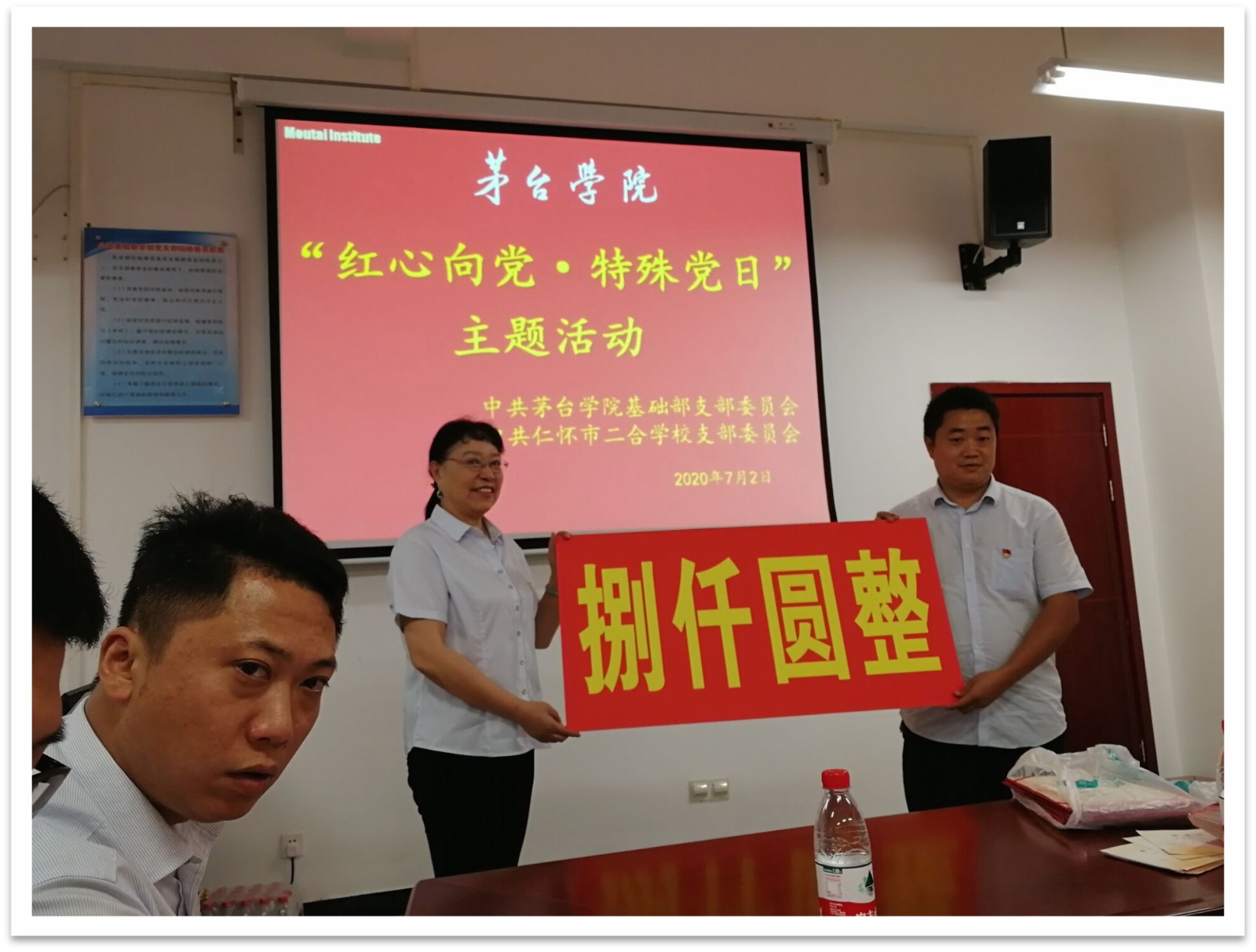 2020年是我国决胜脱贫攻坚的收官之年,7月1日我们迎来了中国共产党99岁生日,为了庆祝建党99周年和助力脱贫攻坚、教育扶贫工作,公共基础教学部党支部于7月2日与仁怀市二合学校党支部开展了支部共建“红心向党·特殊党日”主题活动。公共基础教学部全体党员教师及部分非党员教师和仁怀市二合学校党支部28名党员教师参加了本次特殊党日活动。