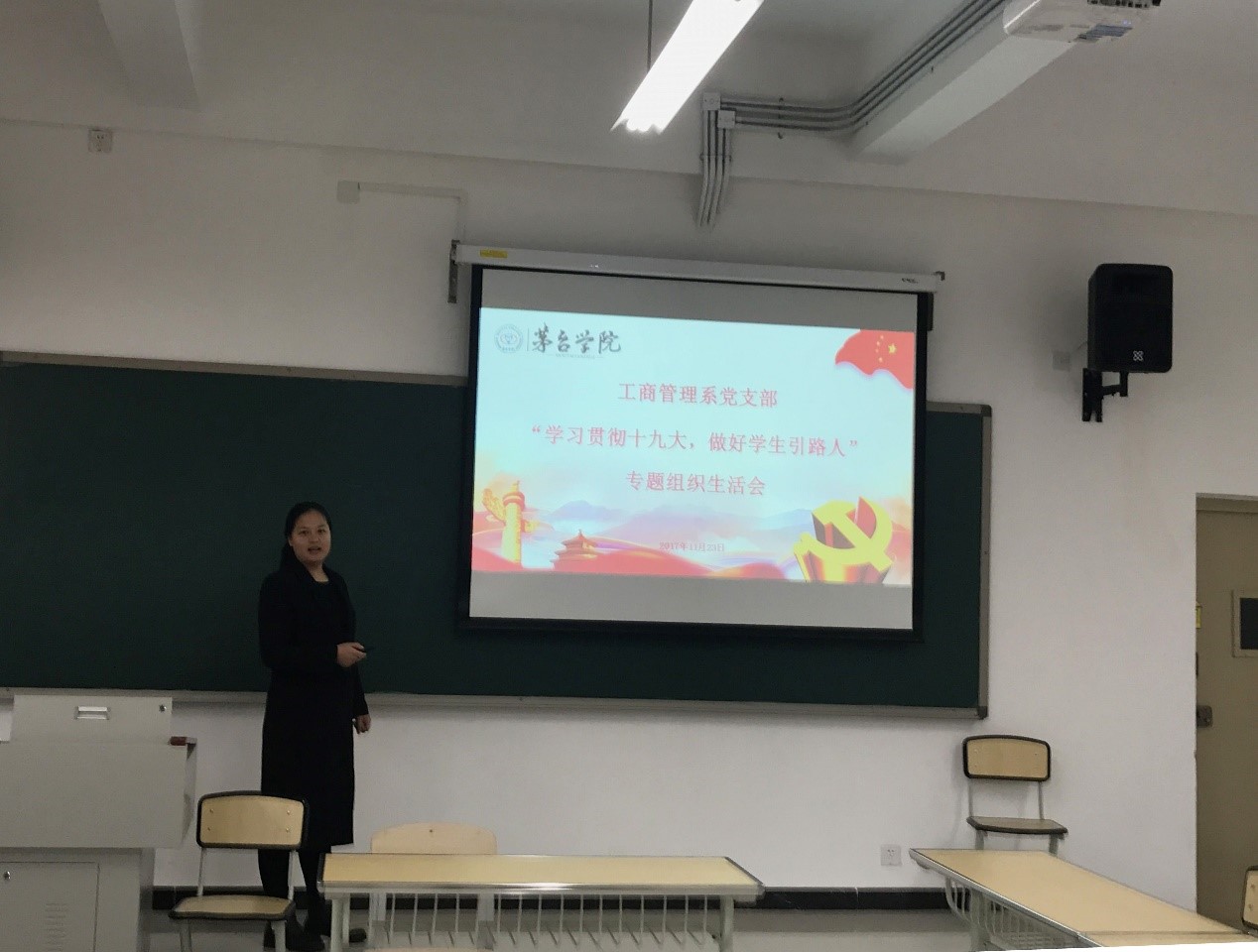 为了切实学懂、弄通、做实党的十九大精神,将其贯穿到教书育人的实践中去,万象城娱乐awc线路工商管理系党支部于11月23日在A2教学楼229教室召开“学习贯彻十九大,做好学生引路人”专题组织生活会,支部全体党员同志围坐一团,共同学习党的十九大精神。