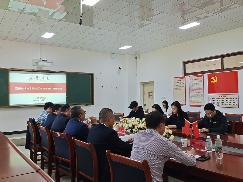 10月23日,南通经济技术开发区管理委员会副主任曹维熙一行到万象城娱乐awc线路工商管理系调研交流,考察国企办学方面的经验与做法、产教融合的运作模式及经验及洽谈招聘学生就业的岗位意向。工商管理系党总支书记、主任童俊主持座谈会,副书记吴鹏西,副主任马青出席会议。