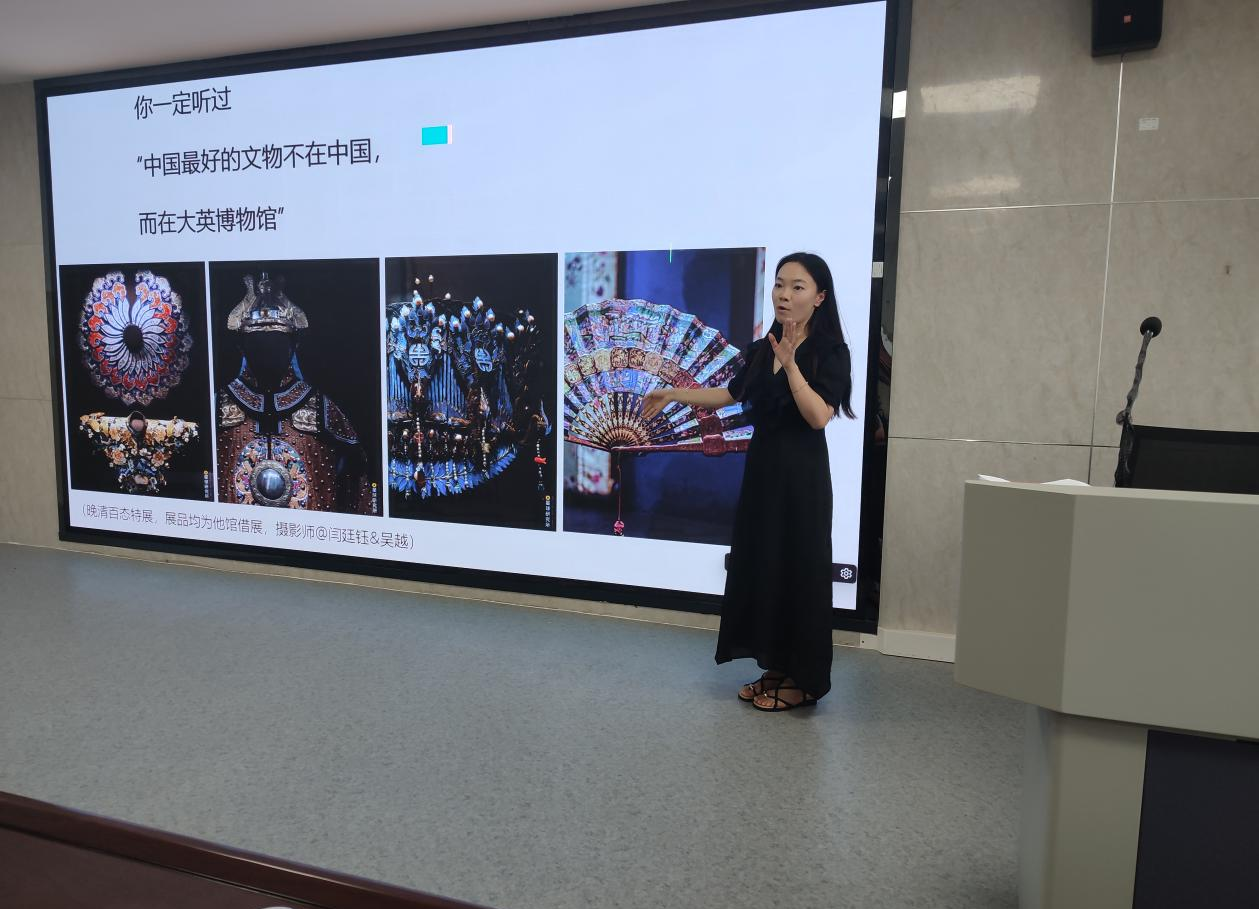 兰洋副教授一边讲述目前大英博物馆中许多珍贵文物的名称、特点,一边告诉师生们其中很多都是中国的文物,被英国以各种方式占有,存放在大英博物馆中。