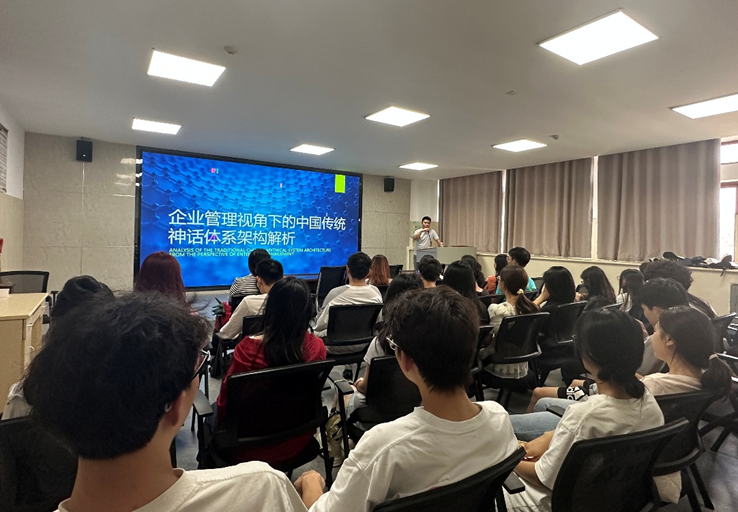 杨礼铖从企业管理视角解构中国传统神话体系,提炼出“诚信为本、仁义为纲、法治有序”的管理核心理念,强调传统文化中蕴含的组织智慧对现代企业治理具有重要启示。讲座内容激发了师生从文化中汲取治学与治事的思维启发。