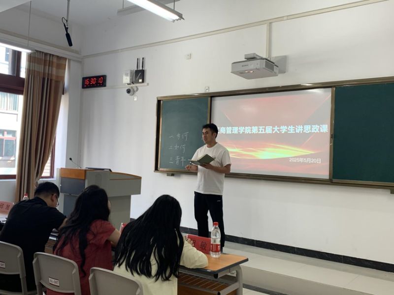 为引导学生深化对思政课教学内容的学习与思考,充分发挥思政课在大学生思想政治教育中的主渠道作用,展现新时代大学生的马克思主义理论素养和精神风貌,2025年5月20日,工商管理学院举办第五届大学生讲思政课比赛。团总支书记徐思军、熊亚,工商管理学院辅导员龚婷婷、胡敏、邱旭出席本次比赛。