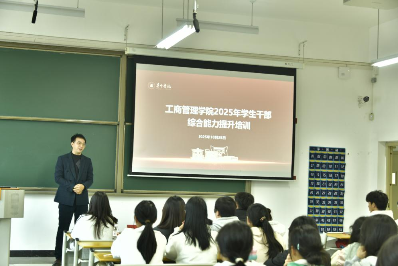 为加强学院团学组织队伍建设,提升学生干部综合素养与服务能力,工商管理学院以“淬英才炼就本领,聚合力服务师生”为主题,于2025年10月28日在A1-415教室开展了学生干部综合能力提升培训。工商管理学院党总支副书记吴叔娥、团总支书记邱旭、团学组织全体成员参与培训。