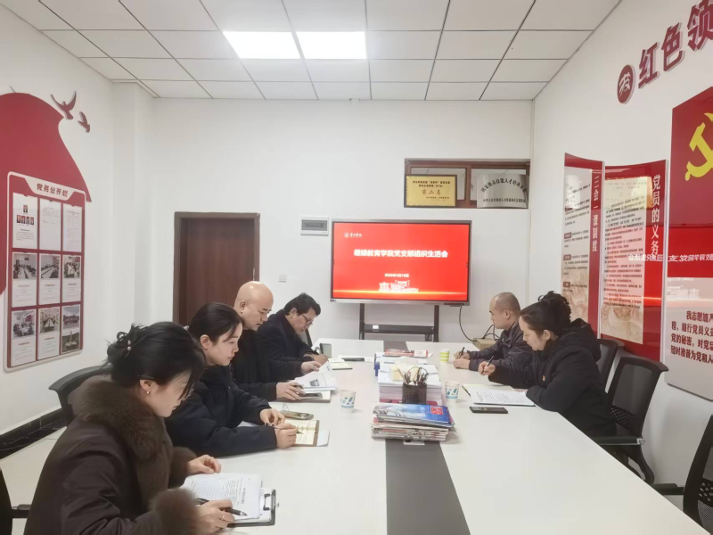 3月19日下午,继续教育学院党支部在党员活动室召开专题组织生活会,支部全体党员参加,联系指导校领导张珊副校长到会指导。