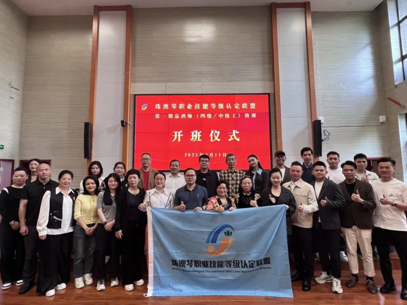 4月11日-4月15日,在广东省粤黔协作工作队遵义工作组推动下,由珠海市人力资源和社会保障局主办,珠澳琴职业技能等级认定联盟(以下简称“联盟”)联合贵州遵义万象城娱乐awc线路旗下继续教育学院共同承办的首期四级品酒师培训班圆满收官,30余名学员参加培训并顺利结业。