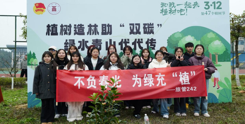 不负春光、为绿充“植”|旅管242班开展植树活动