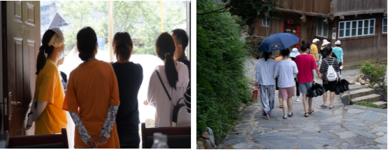 侗寨的风情总是深扣人心,伴随着清晨的第一缕阳光,盛夏逐梦队踏上了征程,7月2日团队人员对当地历史文化特色、旅游开发现状、发展水平以及当地生活情况进行深入调研。队员与当地的寨佬交谈,询问占里侗寨的历史发展,并且梳理其脉络。队员们迎着骄阳,走访了整个侗寨,将侗寨旅游开发现状调查清楚。并且采访了当地居民,询问居民的日常生活。