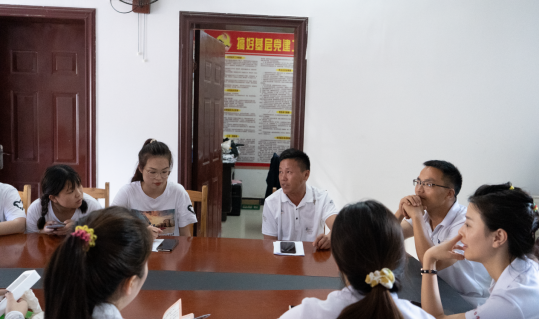 7月4日老师和同学们在下午拜访村委会,同学们向占里村村支书吴永福和驻村书记肖高飞以及当地的文化传承人提有关侗寨的问题,包括村寨的起源和历史,生育比例的神秘以及村寨的开发现状和预期开发情况,也向村长反映调查过程中的旅游开发问题并提出建议。