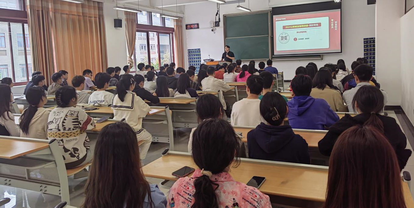 讲座主要围绕公职类报考的流程、岗位选择、相关内容和部分国有企业招考有关知识点等进行讲解。授课老师结合近两年报考情况和当前形势进行了深入分析,并针对备考以及笔试、面试环节的关键点和注意事项给与了指导。在讲座的最后,学生与老师进行了交流互动、答疑解惑。